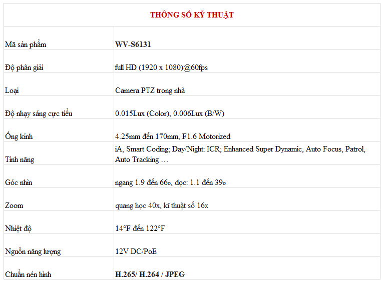 Mô tả Camera Panasonic WV-S6131
