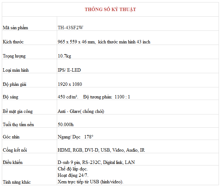 Mô tả Màn hình chuyên dụng TH-43SF2W